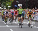 Km 60: | Foratura di Alessandro Covi,mentre la coppia di testa e' ad un chilometro dal passaggio sotto lo striscione di arrivo per il suono della campana |