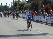 | Andrea Berzi (Progetto Ciclismo Rodengo) anticipa tutti sul traguardo di Bolgare |
