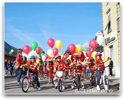 Km 33: | Attraversamento di Levico Terme con gruppo di testa ancora compatto |